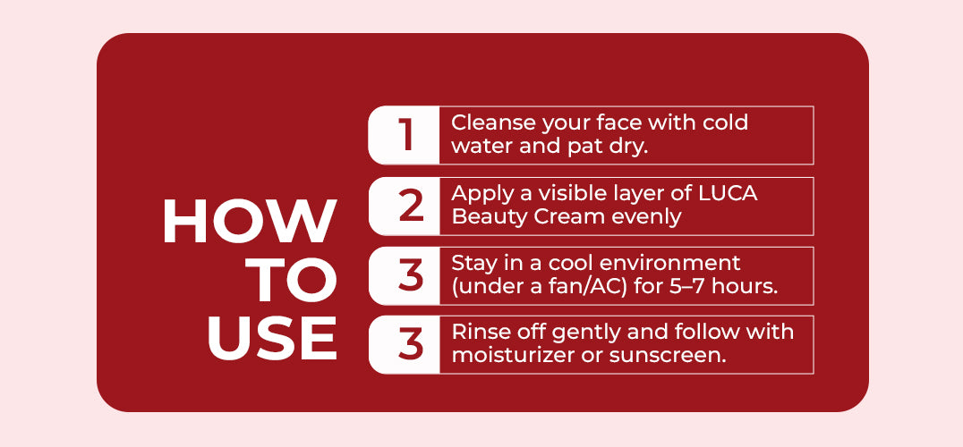 - Apply a thin, even layer of LUCA Beauty Cream.